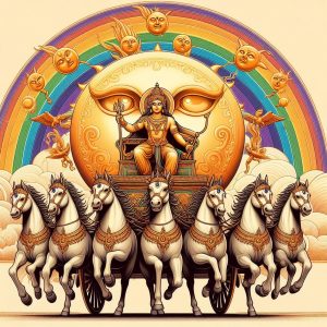 In ancient cultures — especially in the Vedic and Hindu traditions — the sun has long been revered as the giver of life, bringer of wisdom, and a divine teacher. In Hindu mythology, Surya, the sun god, rides a chariot drawn by seven horses, symbolizing the seven colours of the rainbow and the seven chakras in the human body. This vivid imagery reflects the deep understanding of energy, healing, and inner alignment that was present in ancient yogic wisdom.