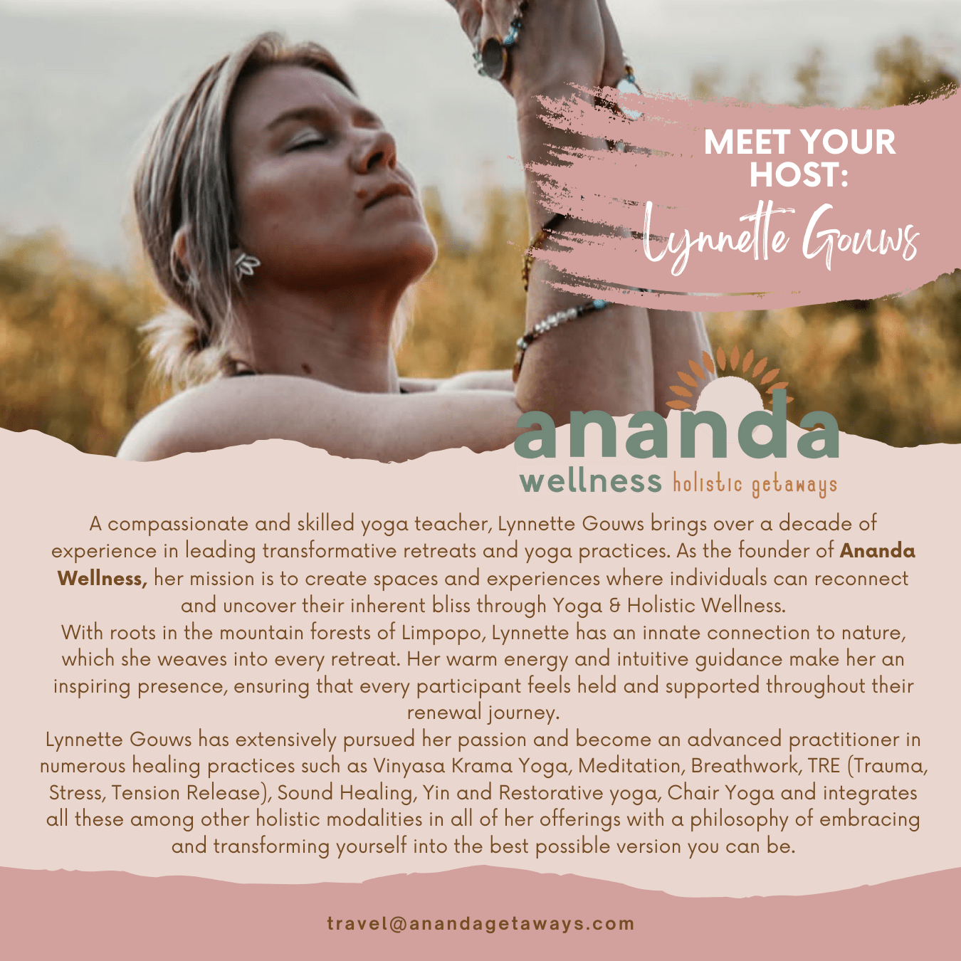 Ananda Wellness Holistic Getaways invites you to pause, nourish, and nurture yourself in the serene embrace of Sashwa River of Stars—a sanctuary nestled in the Greater Kruger National Biome, along the banks of the Olifants River. Here, under the vast African skies, you will have the opportunity to reconnect with yourself, immerse in nature, and find deep inner peace.
